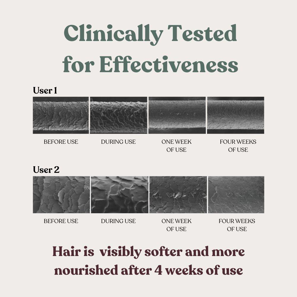 In a 4-week clinical test, our users saw a visible improvement in hair smoothness and elasticity, with cuticle alignment improving by 80%.